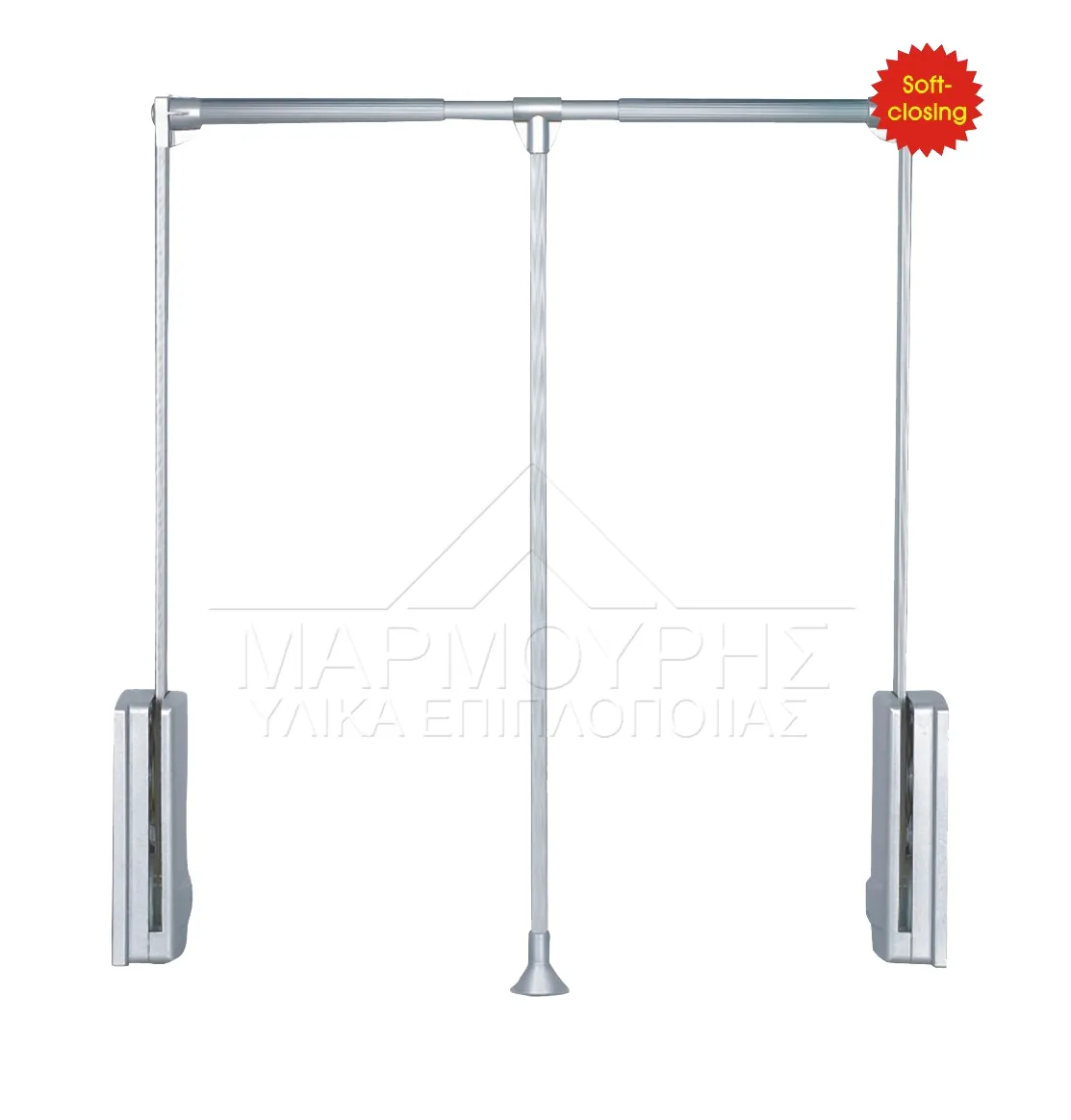 Ασανσέρ αλουμινίου για εύκολο κρέμασμα και τακτοποίηση ρούχων με εύκολη πρόσβαση σε ψηλά σημεία ντουλάπας ή βεστιαρίου με μηχανισμό απαλού κλεισίματος (φρένο) για την αποφυγή κραδασμών. Με ρυθμιζόμενο φάρδος για να προσαρμόζεται στη διάσταση που επιθυμείτε και ανθεκτικό με μέγιστη δυνατότητα φόρτωσης τα 12 kgr. Xρώμα ασημί