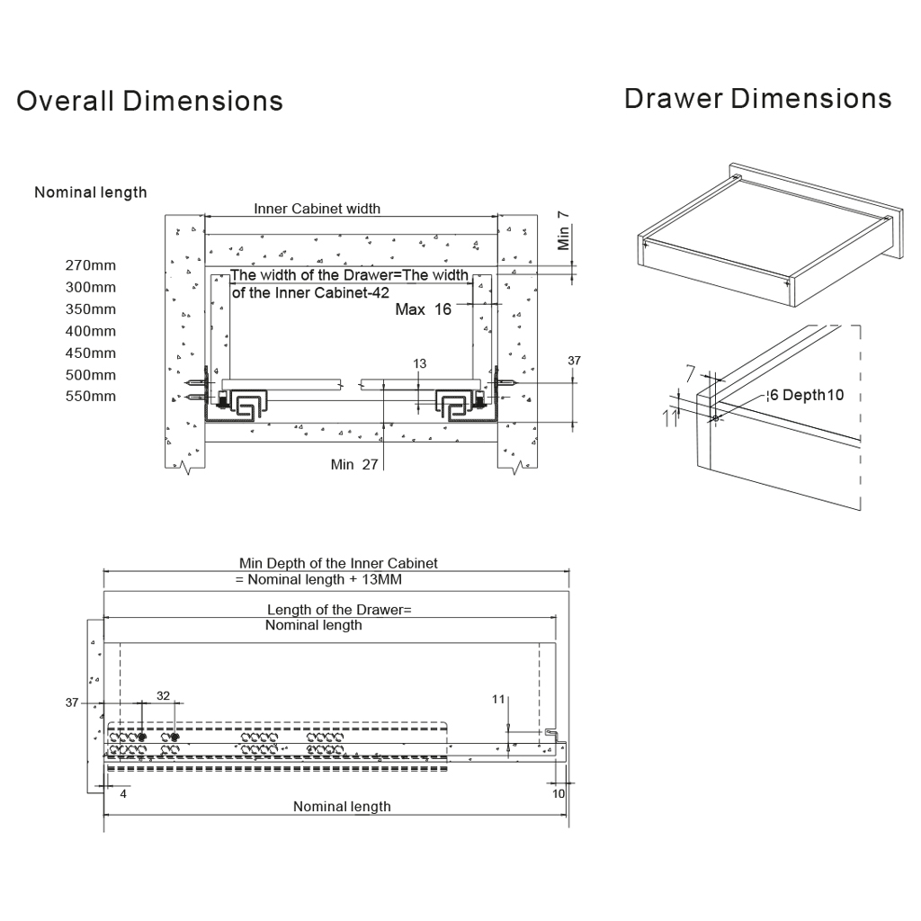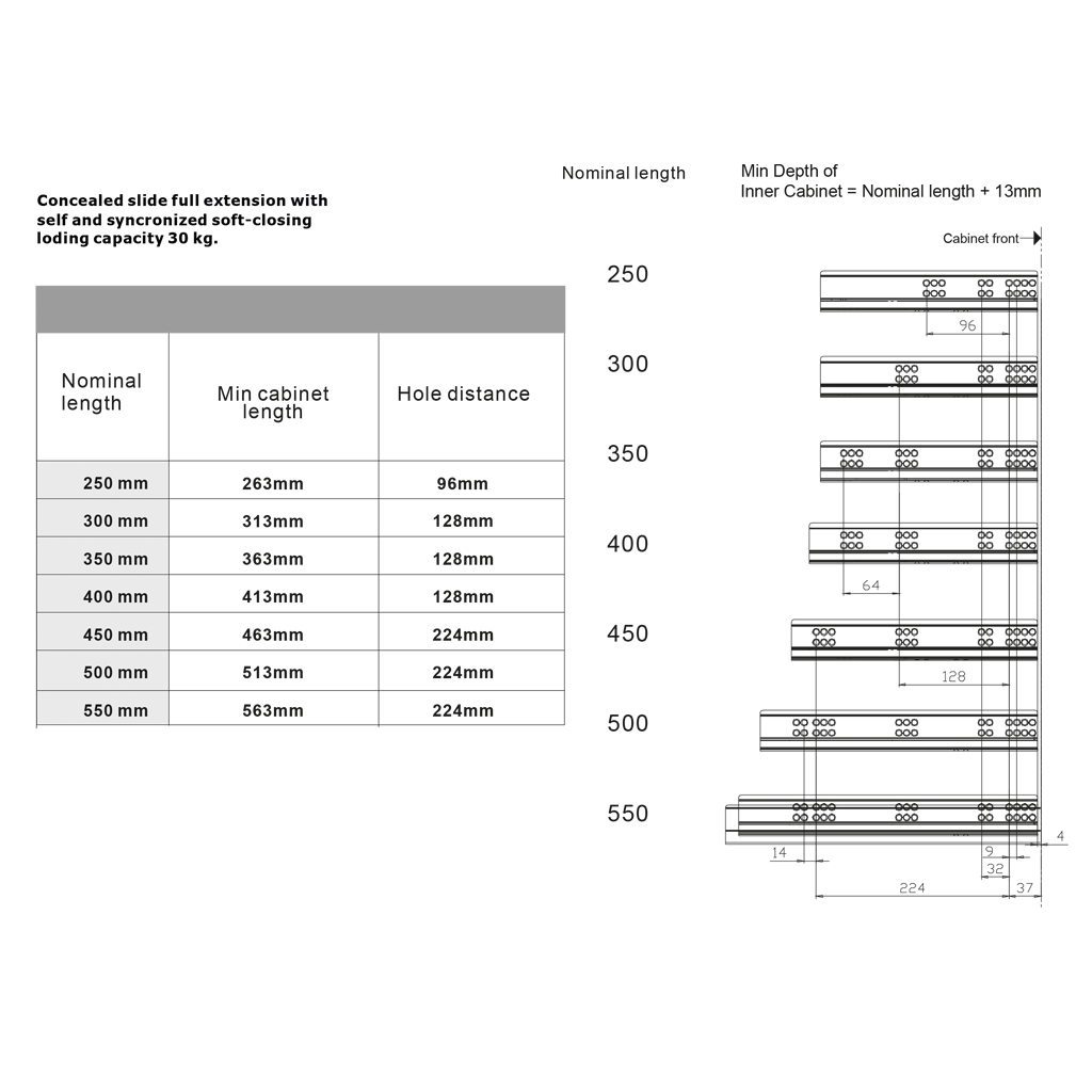 Οδηγός συρταριού κρυφός για τοποθέτηση κάτω από το συρτάρι, ολικής εξαγωγής, με ενσωματωμένο φρένο. Μήκος 30 εκατοστά.