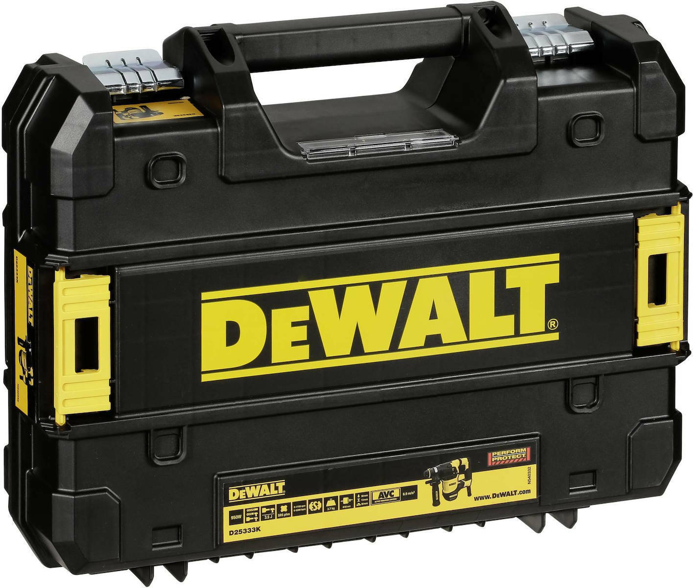 Σκαπτικό ρεύματος της εταιρείας Dewalt με ισχύ 950Watt. Διαθέτει λειτουργία κρούσης για καλέμισμα σε διάφορα δομικά υλικά, λειτουργία περιστροφής χωρίς κρούση για διάτρηση σε χαμηλής σκληρότητας υλικά και δυνατότητα περιστροφής με κρούση για διάτρηση σε υψηλής σκληρότητας υλικά όπως μπετόν. Επίσης, διαθέτει υποδοχή SDS – SDS Plus (TE-C) για καλύτερη απόδοση σε λειτουργίες περιστροφής με κρούση συγκριτικά με τις υπόλοιπες (ενδείκνυνται για εργασία σε μπετό ή πέτρα) και εύκολη αλλαγή τρυπανιών που μπορεί να γίνει ακόμη και με το ένα χέρι.