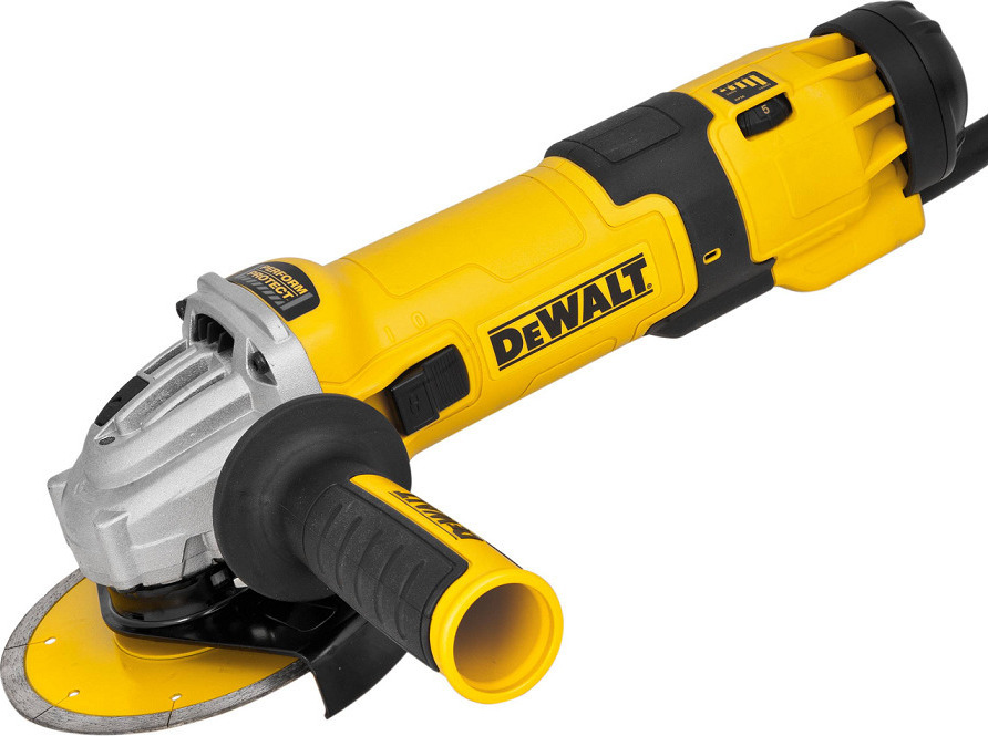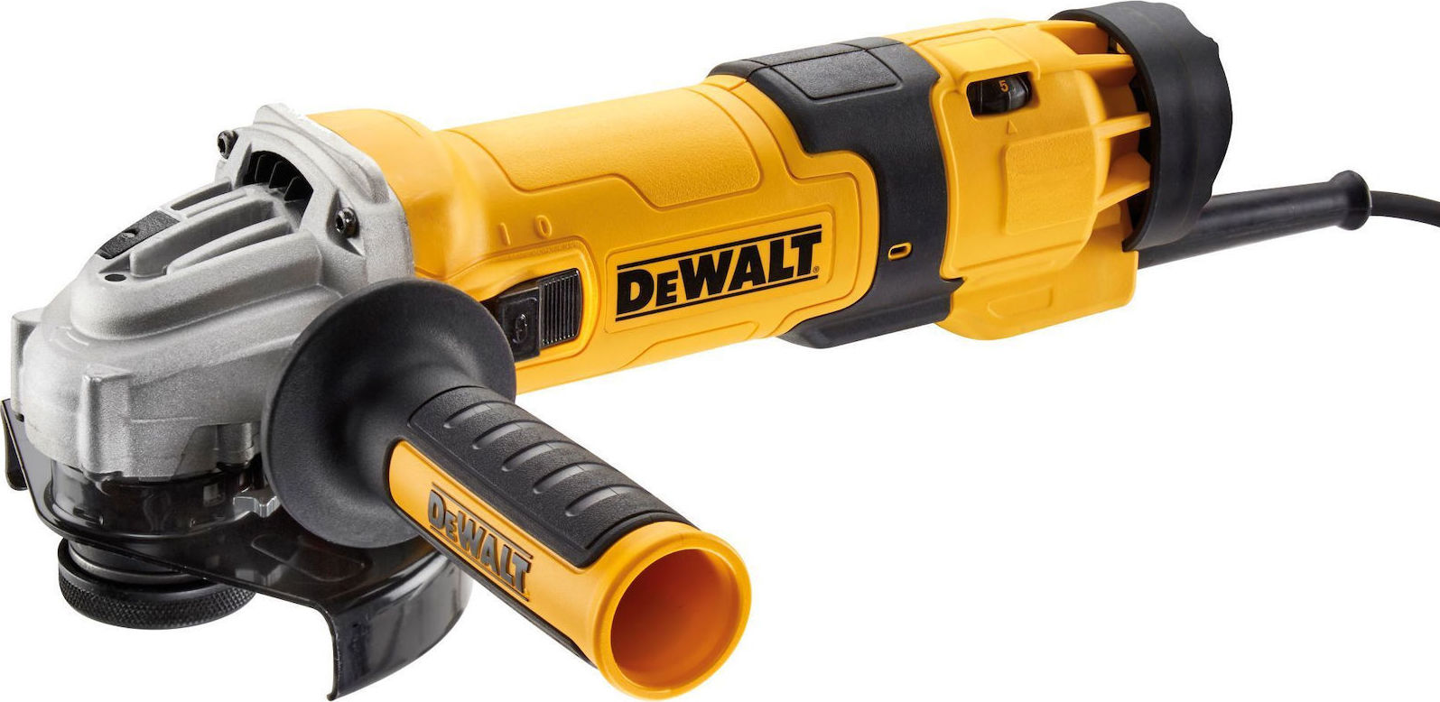Γωνιακός τροχός ρεύματος Dewalt DWE4257 125mm 1500W με μέγιστη διάμετρο δίσκων 125mm. Διαθέτει σύστημα μεταβαλλόμενης ταχύτητας ώστε να ρυθμίζει τις στροφές ανάλογα με το υλικό. Διαθέτει διακόπτη με σύστημα ρελέ που αποτρέπει την ακούσια εκκίνηση του εργαλείου όταν το φις επανατοποθετηθεί στην πρίζα και ο διακόπτης έχει παραμείνει στη θέση εκκίνησης. Παρέχει προστασία υπερφόρτωσης η οποία μειώνει τη μέγιστη απόδοση του εργαλείου προειδοποιώντας ότι το εργαλείο έχει υπερθερμανθεί. Το σύστημα εξαγωγής σκόνης βοηθά στο φιλτράρισμα σωματιδίων σκόνης και τα απομακρύνει από την περιέλιξη του μοτέρ. Με ρυθμιζόμενο προφυλακτήρα χωρίς εργαλείο. Το κιβώτιο γραναζιών χαμηλού προφίλ εξυπηρετεί την εργασία σε στενούς χώρους.