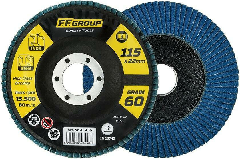 Δίσκος τριβής λείανσης φτερωτός με κούρμπα 115mm FF GROUP με κόκκωση 36mm, ιδανικός για λείανση ανοξείδωτων, ατσαλιού και παντός είδους μετάλλων που πρόκειται να φινιριστούν. Μεγάλη αντοχή υψηλή απόδοση. Εφαρμόζει σε όλους τους γωνιακούς τροχούς χωρίς κάποιο εξάρτημα.