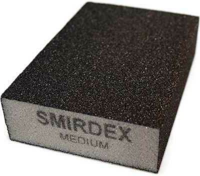 Λειαντικά σφουγγαράκια τετράπλευρά Μεσαία 120x70x25mm Smirdex σχεδιασμένα για υγρή ή ξηρή λείανση σε ξύλο, μέταλλο, αστάρι, χρώμα, σύνθετα υλικά ή γυψοσανίδες. Είναι ένα χρήσιμο εργαλείο, το μπορεί εύκολα να προσαρμοστεί σε οποιοδήποτε είδος και σχήμα επιφάνειας, κατάλληλο για όλες τις εφαρμογές λείανσης χεριών.