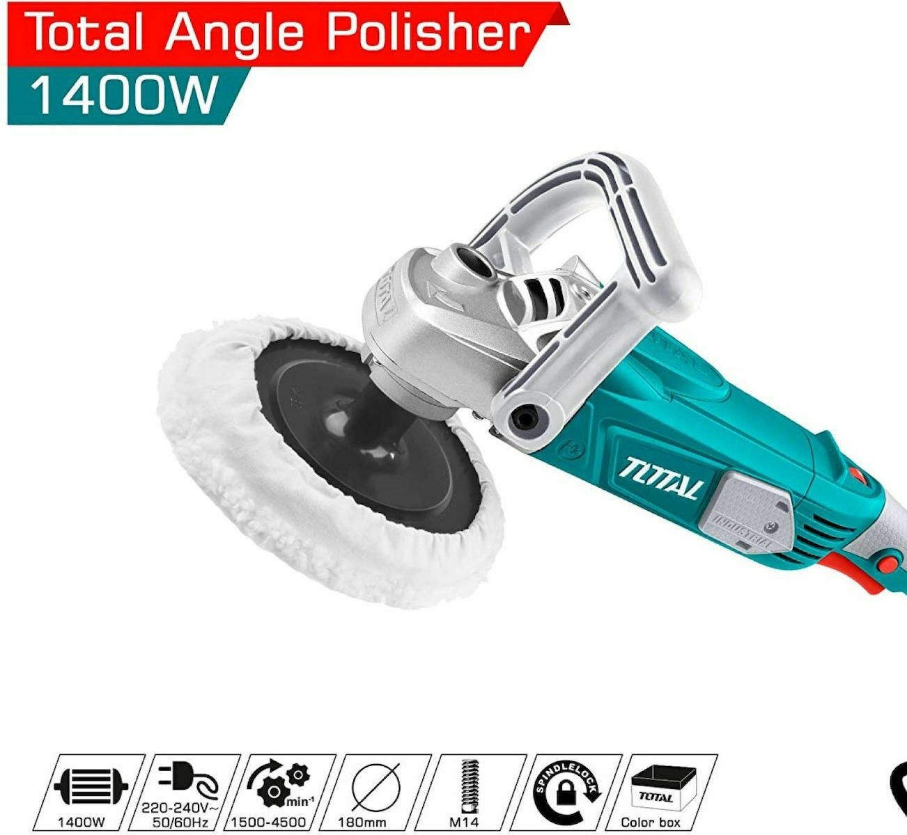 Γωνιακός αλοιφαδόρος TP1141806 Total με ηλεκτρονική ρύθμιση στροφών, ιδανικό για κάθε χρήση. Διαθέτει εργονομική λαβή με διακόπτη μπλοκαρίσματος και προσφέρει εύκολη και γρήγορη αλλαγή δίσκου λείανσης.